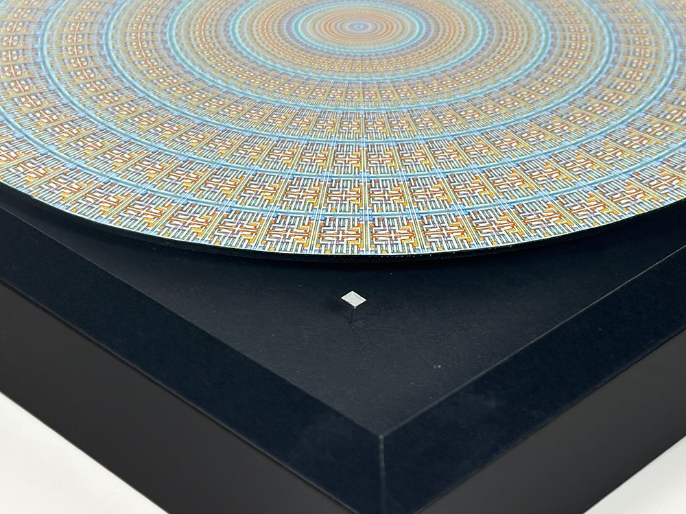 When I turn a ChipScape into a Bloom, I take that rectangular slice of technology and “bend” it into a perfect circle. The change is simple, but the effect is striking: the hard lines of the microchip suddenly arrange themselves into something soft and organic, like a cathedral’s Rose Window or the petals of a flower just beginning to open. It’s technology reshaped into something familiar and human, and people are often surprised by how warm and alive it feels.